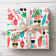 Tropical Christmas wrapping paper features a pattern of surfboards, palm trees with string lights, decorated pineapples, hibiscus flowers, sunglasses, ornaments and the Hawaiian greetings "Mele Kalikimaka" and "Aloha". Perfect for beach, coastal, island and surfing themes. Original artwork KL Stock.
