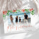 Wish your friends and family a merry christmas with these modern, mele kalikimaka photo christmas cards. Featuring a white backgound, script which reads 'MELE KALIKIMAKA', your favourite family photo surrounded by tropical flowers, palm leaves and personalised with a greeting message your family name and the year.