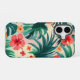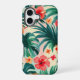Tropical Hibiscus and Palm Leaves Pattern iPhone 16 Case