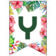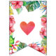 A colourful and joyful Happy Birthday Bunting Flag with a Happy Watercolor Tropical Floral Theme featuring pink hibiscus, tropical palm leaves and pink hearts. Perfect for a Summer Celebration and to create a joyful Hawaiian atmosphere. You can change the text from the Personalise Menu. If you need help, please contact me. Matching products are available.