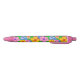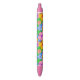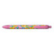 Colourful ballpoint pen covered in scattered tropical hibiscus flowers in pink, orange, and yellow.