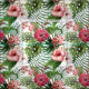 Tropical hibiscus flowers foliage pattern fabric