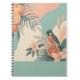 Tropical humming bird pastel modern vector design with palm trees, floral, and fruit.