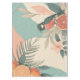 Tropical humming bird pastel modern vector design with palm trees, floral, and fruit.