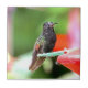 Closeup photograph of a beautiful tropical hummingbird called a Black-Bellied hummingbird sitting at a red hummer feeder. This picture was taken in Costa Rica.