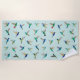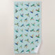Unique colourful beach towel for hummingbird lovers featuring several species of tropical hummingbirds, such as a Fiery-throated Hummingbirds, Golden-tailed Sapphire and Sapphire-bellied Hummingbirds, Violetear, Coronet and Glittering Starfrontlet Hummingbirds. Images taken from original watercolor paintings by Christiane Dobbins.