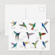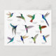 Postcard for hummingbird lovers featuring several hand-painted species of tropical hummingbirds such as Velvet-purple Coronet Hummingbirds, blue-throated Starfrontlet, White-necked Jacobin, Golden-tailed Sapphire, Dusky Starfrontlet, and Black-bellied Hummingbirds. Images taken from my original watercolor paintings.