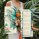 Tropical Iridescence Menu, a stunningly designed menu featuring a tropical-inspired pattern with a subtle iridescent touch. Perfect for beach, garden, and destination weddings, this menu adds a luminous and elegant finish to your event while showcasing your dishes with style. It enhances the tropical charm of your celebration, providing a polished and sophisticated look. This design is created using a digitally edited AI image.