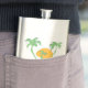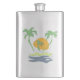 Tropical island beach scenery. Outline palm tree Hip Flask