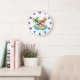 Keep track of island time with this tropical island wall clock. The face features a cheerful sunny cartoon illustration of a cute sea turtle relaxing under a palm tree at a beach picnic. This exotic paradise decor is a wonderful addition to a kitchen, nursery, or office, bringing a summer vacation feel to your home. Even when you are far from the sand shore, this clock reminds you of the ocean breeze and a relaxing holiday getaway.