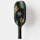 Tropical Island Floral Monogram Script Black Gold Pickleball Paddle