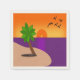 TROPICAL ISLAND WITH PALM TREE, SUNSET AND BIRDS