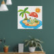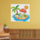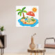 A tropical island picnic scene with a turtle and hot sun. This design looks really effective on these Poster