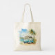 This coastal cotton tote bag features a retro van bus in blue and white with tropical palm trees on each side. Personalize with your choice of name or special text on the front. Makes a great personalized gift bag.