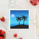 Paper napkins in a black silhouette of a tropical island, under a deep blue night sky, with moon and stars