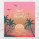 The mouth-watering colours of a summer fruit salad, from melon and peach through apricot and raspberry, give the pieces in this mix n' match design set some of it's irresistible appeal... the beautiful island palm trees, palm fronds, delicate birds in the sky and giant sunrise over sparkling water easily provide the rest. The matching wedding wine labels shown here feature all of the above plus a 'love and thanks' message and a template to easily add the bride and groom's names and wedding date. Search ID581 to see the matching products and other colour options for this design.