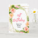 This beautiful and elegant birthday card features watercolor pink and orange hibiscus flowers and foliage. The text combines handwritten script and serif fonts for a stylish and modern look. This is perfect for a summer tropical birthday.