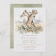 Beautiful watercolor Jungle Giraffes with floral elements and grasses, foggy mountain outback or Savanna atmosphere with terra-cotta, khaki and green foliage on a faux, very light grey background. The Back is a mottled watercolor green. Perfect for a safari, zoo, African or wild animal wedding. All wording can be changed to fit your needs, such as a retirement, bridal, baby shower or birthday celebration.