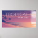 Minimalistic tropical landscape at sunset OCEAN SHORE WITH PALM TREES horizontal scene purple and pink gradient