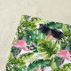 Bold fun tropical pattern features watercolor pink flamingos, bird of paradise flower and large leaves