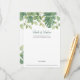 These trendy and elegant bridal shower advice cards feature watercolor monstera, fiddle leaf fig, and pothos vine leaves in green on a simple white background. Modern hand-written script in green is also featured.