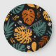 Tropical Leaves: Dark Vintage Seamless. Large Clock