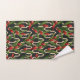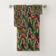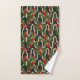 A green tropical leaves and red ginger plants on a black and ivory geometric pattern background, this bathroom towel set is a perfect accent to your home decor.