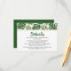 Tropical leaves green and gold wedding details insert card. A pretty design that displays leaves of Split Leaf Philodendron (Monstera deliciosa) or Swiss Cheese Plant and palm leaves in green with gold outline. The back is covered with a gold polka dot pattern on dark green. Choose it for your tropical coastal beach or destination wedding.