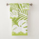 Tropical Leaves Green White Fancy Trim Bath Towel Set