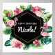 Tropical Leaves Hibiscus Flamingos Banner Poster. Customise with any text. Matching items in my store.