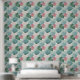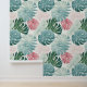 Tropical Leaves Pastel Turquoise Pink Green Wallpaper