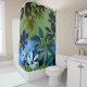 Summer mod, trendy tropical leaves art on a custom background color shower curtain.