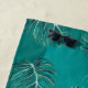 Teal palm leaves tropical Hawaiian pattern with aloha script over a vibrant ocean green background making a trendy chic elegant summer bath towel set. ++++++++++++ Personalise it with your script monogram name initials and signature.