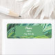 These return address labels are adorned with large striped green tropical leaves. This beautiful foliage common in the tropics overlaps creating layers of green and yellow leaves. The stripes seen on the leaves create an abstract geometric pattern to this label and support a green rectangle and your name and address.