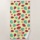 Quirky summer patterned monogrammed beach towel with watermelons, strawberries, tropical leaves and ice lollies.