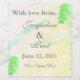 Tropical leaves watercolor wash splash of soft pink, green, yellow, blue with green leaves. With Love From, insert Bride and Groom's First Names, Wedding Date, and Name of Wine bottle in black typography, or delete wine name field.