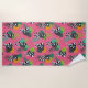 Lovely lemurs on a pretty pink background, colourful tropical pattern.