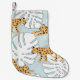 Tropical leopard animal and monstera palm leaves,e small christmas stocking