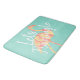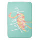 Trendy "Let's Flamingle" pineapples patterned pink flamingo silhouette over mint bath mat.