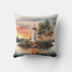 "Tropical Lighthouse at Sunset – Watercolor Digita Cushion