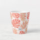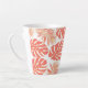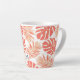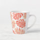 Modern living coral monstera and palm leaves tropical latte mug. The elements of this gorgeous design are a pattern made of coral monstera and palm leaves with gold outline and your monogram in a frame.