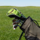 Get ready for an amazing day on the golf course. This golf head cover features a nature photo of a brown gecko clinging to a branch surrounded by bright green leaves. Your initials appear below the cute gecko and can quickly be personalised.