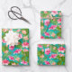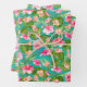 Three sheets of wrapping paper feature tropical hibiscus flowers on a turquoise background (or any colour you choose). MORE colours in our store.
