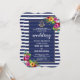 Elegant, exotic, destination card design featuring Luau Hawaiian Flowers Bouquets, navy blue stripes, a faux silver foil anchor, a semi-transparent shape for information with a faux double silver frame. For matching items, please, visit my Tropical Floral Luau Navy Blue Stripes Wedding Collection.