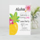 Tropical Luau celebration for a First birthday party. This invitation has a large pineapple off to the side with a pink hibiscus off the corner. Personalise with your party information.