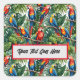 with jungle palm tree leaves, red parrot, blue and yellow parrot