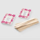 Tropical magenta pink and gold leaves wedding program hand fan featuring leaves of Split Leaf Philodendron (Monstera deliciosa) or Swiss Cheese Plant and palm leaves in fuchsia pink with gold outline. Your text is in a white frame.