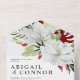 Elements: Watercolor magnolias with green and red foliage, modern fonts. Colours: white, green, red, crimson. Themes: Modern, fun, summer, destination, beach, palm trees, rainforest, botanical, floral. Collection: Tropical Magnolia White Green Red Destination Wedding Collection Product Type: All-In-One Wedding Invitations