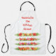 Embrace your inner culinary royalty with the "Kitchen Queen" personalized apron, featuring a vibrant array of tropical floral garlands. This stylish apron showcases lush hibiscus, plumeria, and bird of paradise blooms in rich reds, oranges, and pinks, beautifully tiered against a crisp white background. With bold, customizable red text for a name or title, it’s the ultimate statement piece for home chefs who bring a taste of the islands to every meal. Durable and chic, it makes a perfect gift for the reigning chef of your kitchen.