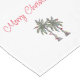 Tropical Beach Merry Christmas table runner, with a palm trees illustration and script typography. With customisable lettering, you add your own information. A festive addition to your holiday table decor.
